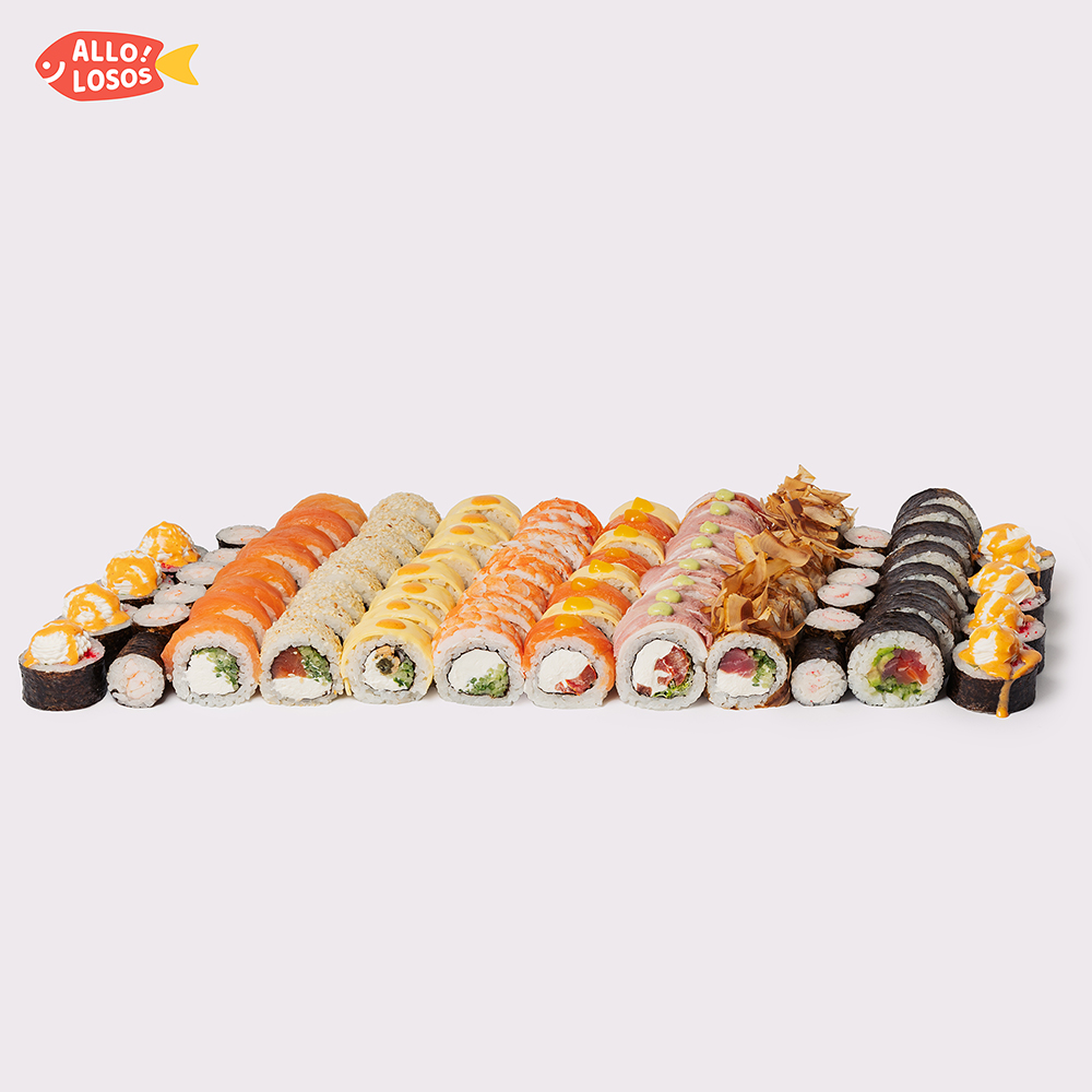"Грінч" від "Алло, Лосось" — це сет для тих, хто не шукає компромісів. Великий, яскравий і зухвалий, він об’єднує одразу 84 шматочки ролів, які вражають своїм різноманіттям, інтенсивністю смаку та оригінальністю. У кожному ролику — унікальний сюжет: то гострий, то ніжний, то димний, то хрусткий. Це справжнє гастрономічне свято, що сподобається як гурманам, так і великим компаніям.